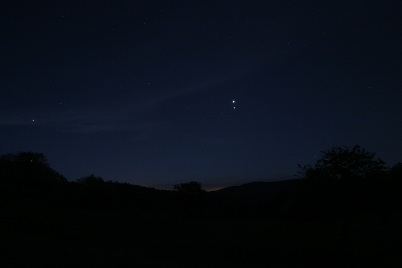 Posneto v jutranji zarji 4. in 5. novembra 2004 na obmocju Krasa. Fotoaparat Canon EOS 20D, objektiva 18-50 mm in 17-40 mm. Osvetlitve 1-30 sekund. Na posnetkih, ki so daljsi od 1 sekunde je odstet temni tok. Copyright (c) H. Mikuz, Observatorij Crni Vrh