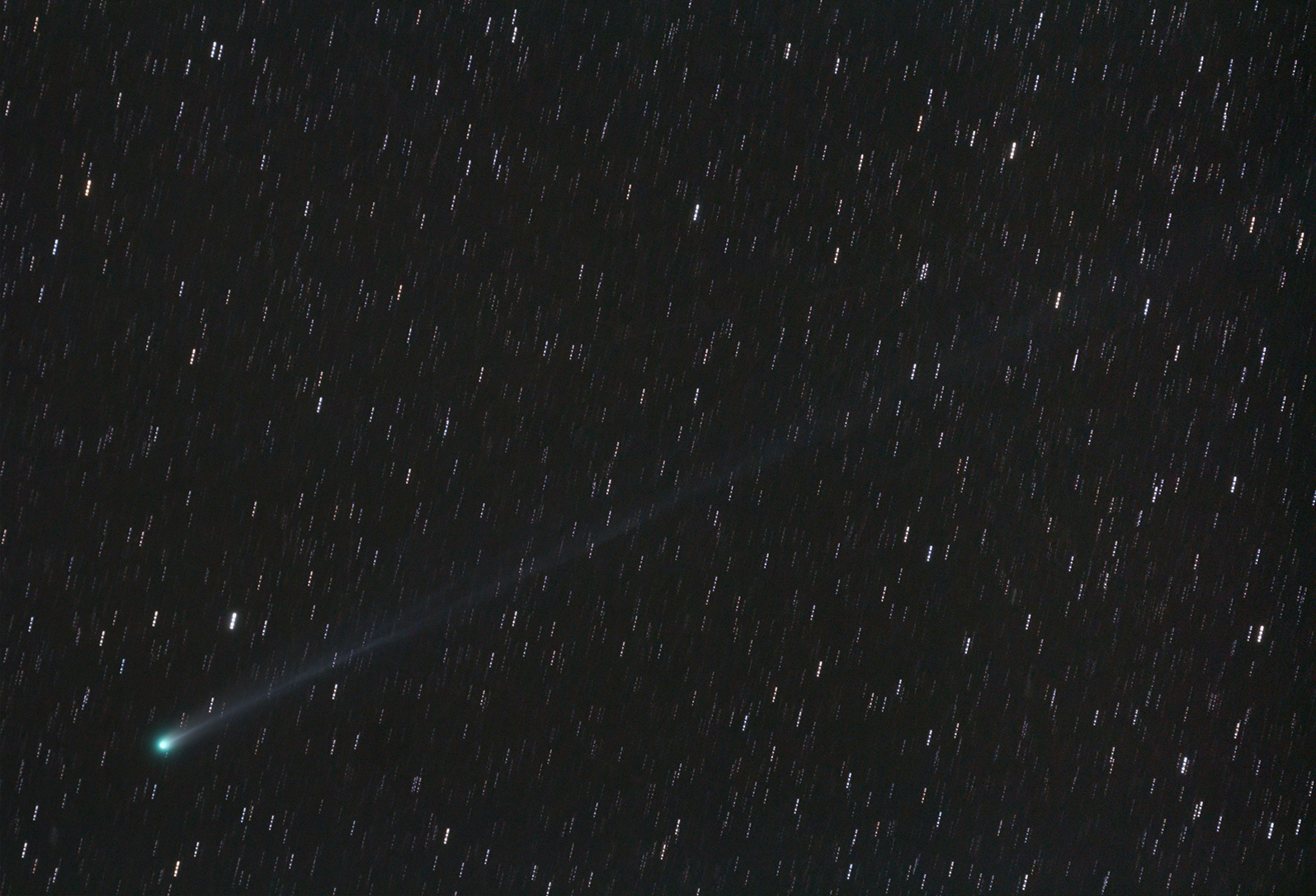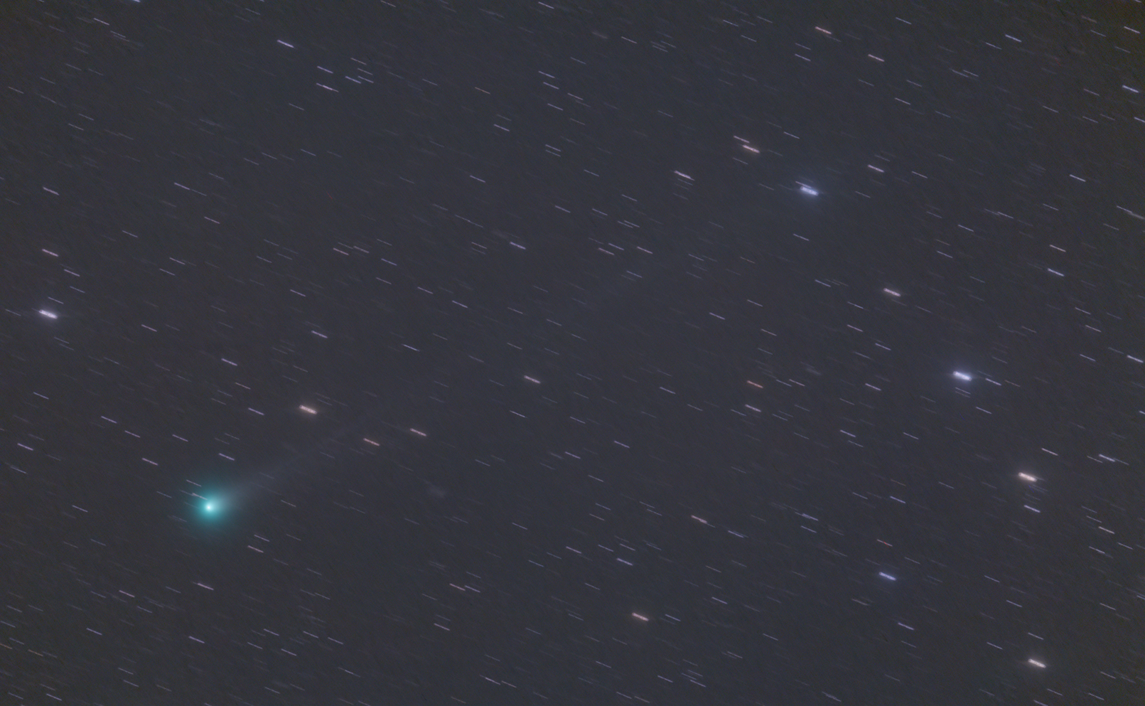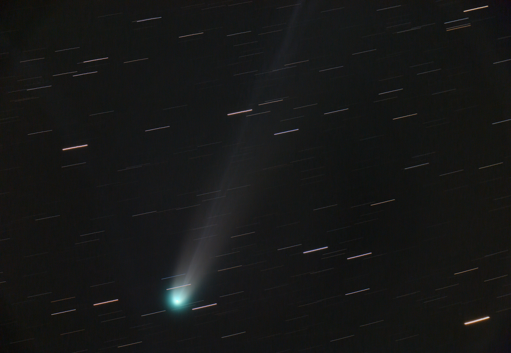 Exposure time was 23 minutes (23x60 seconds). The tail length is about 7 degrees. Image scale is 18.0 arc sec/pixel.