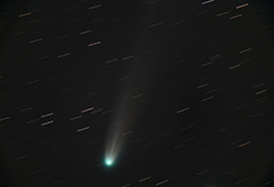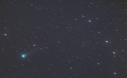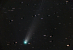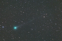 Exposure time was 28 minutes (28x60 seconds). Image scale is 5.04 arc sec/pixel. The comet has an ion tail about 1.5 degree long.